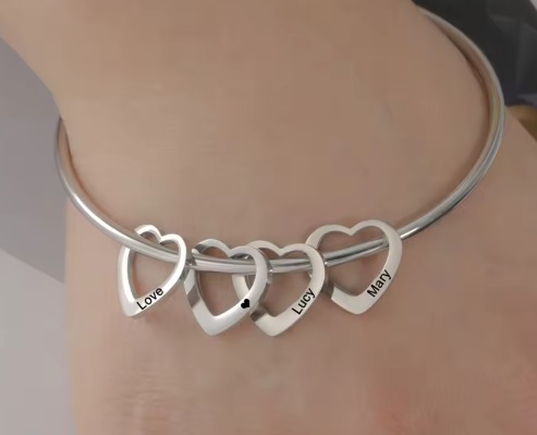 Pulseira rígida com corações |